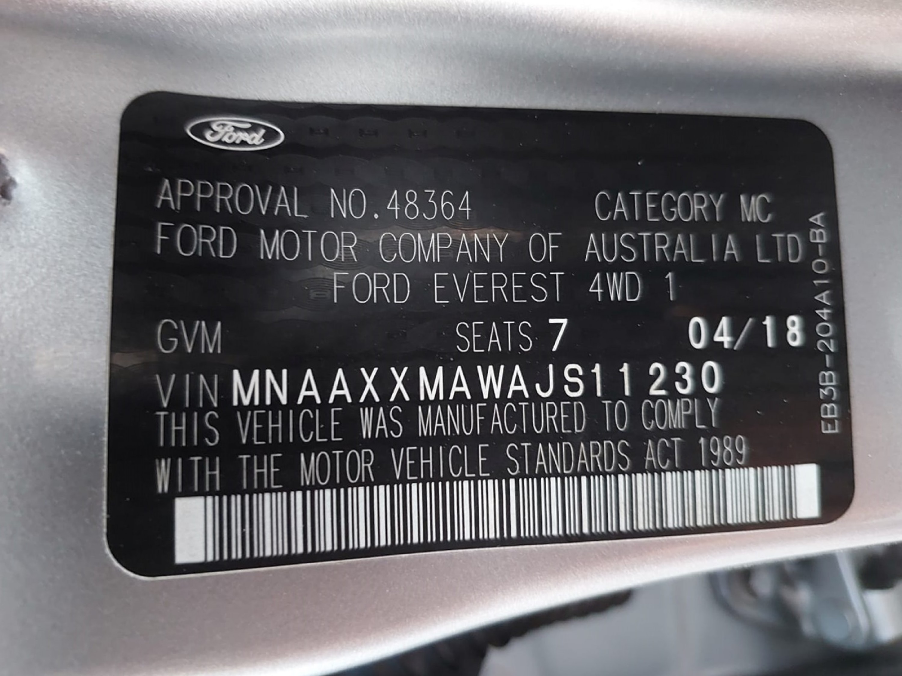 2018 FORD EVEREST. SUV 3.2 4WD AT Silver