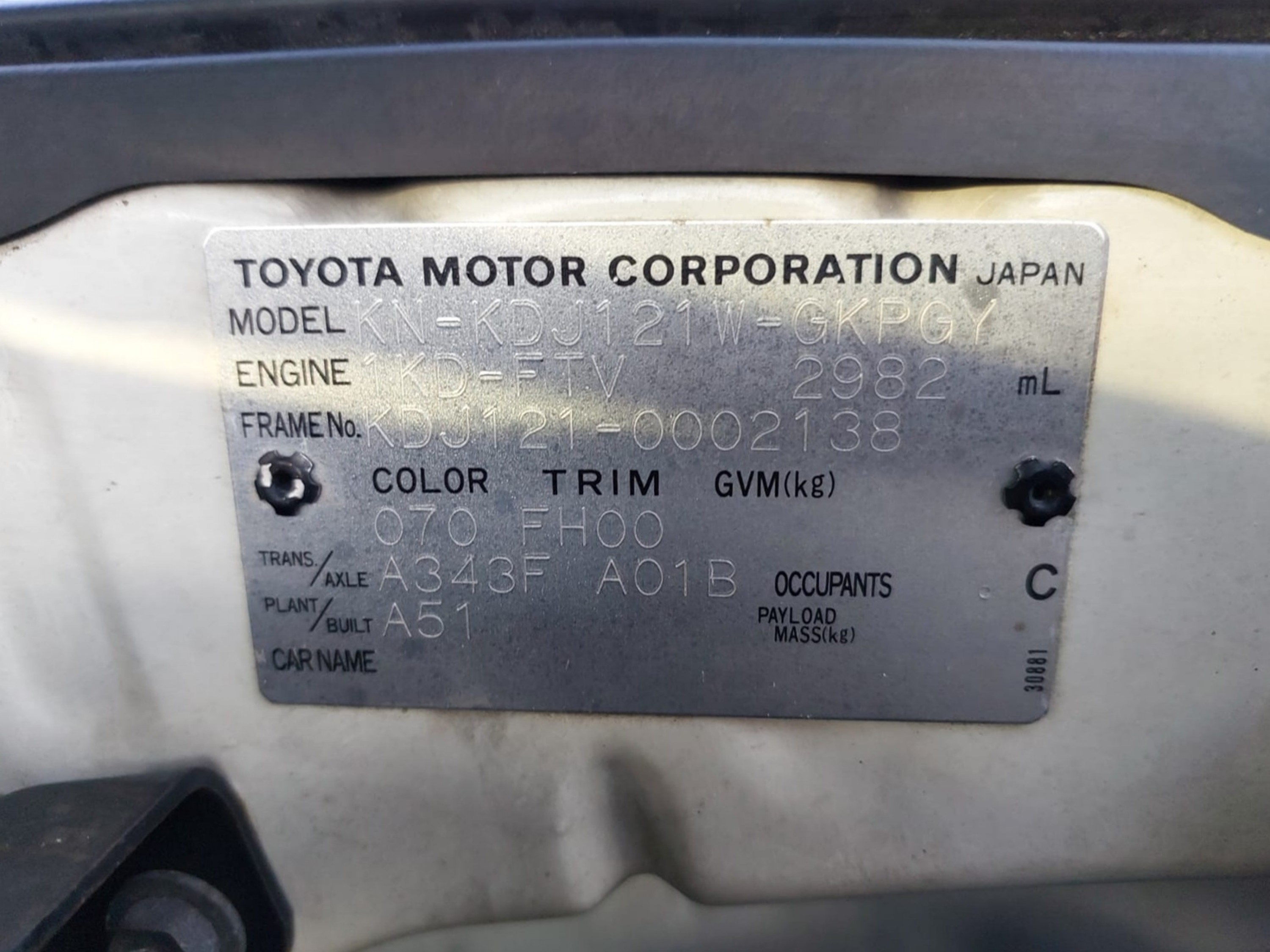 Chassis # KDJ121-0002138 Mileage 195,000 (km)