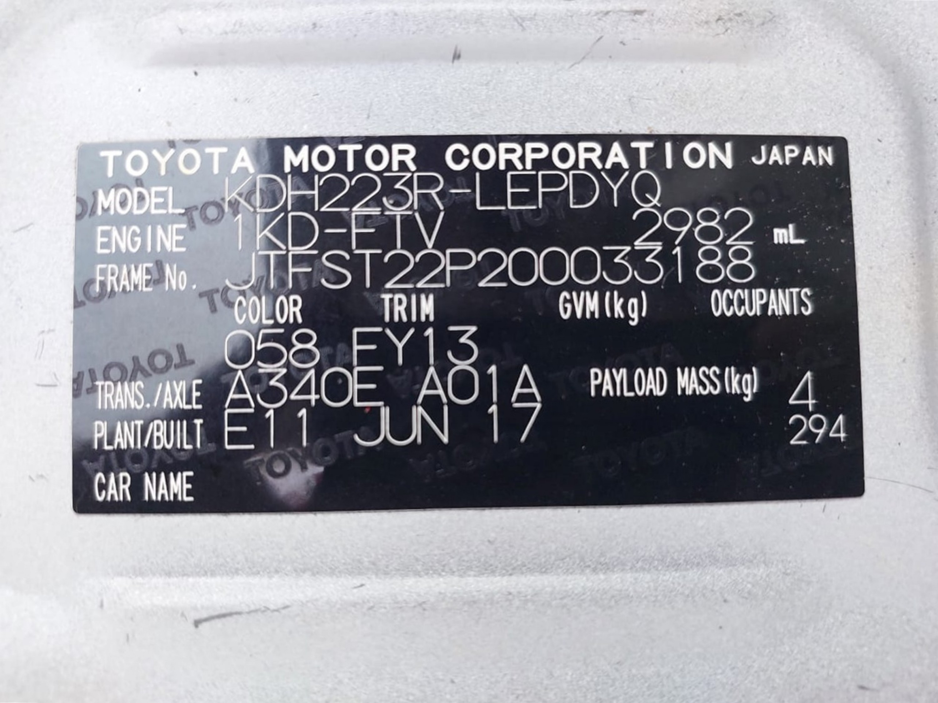 | Chassis # | JTFST22P200033188 | Mileage | 241000 (km) |
